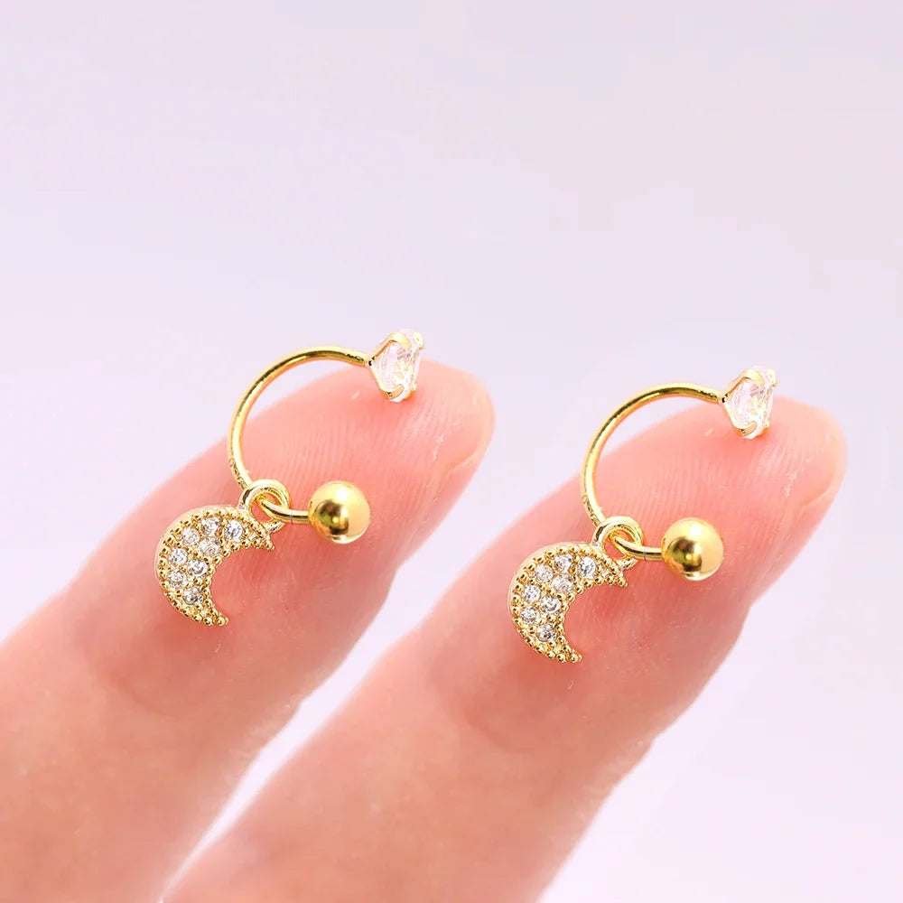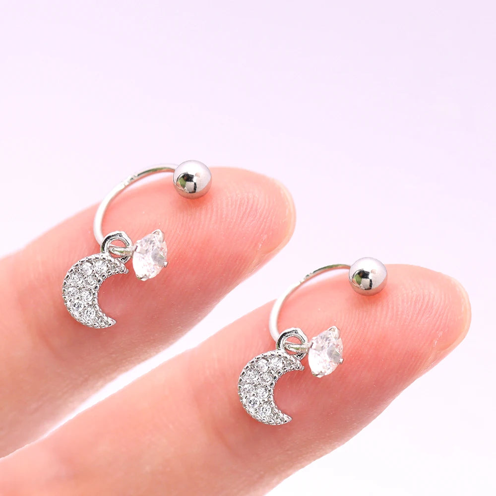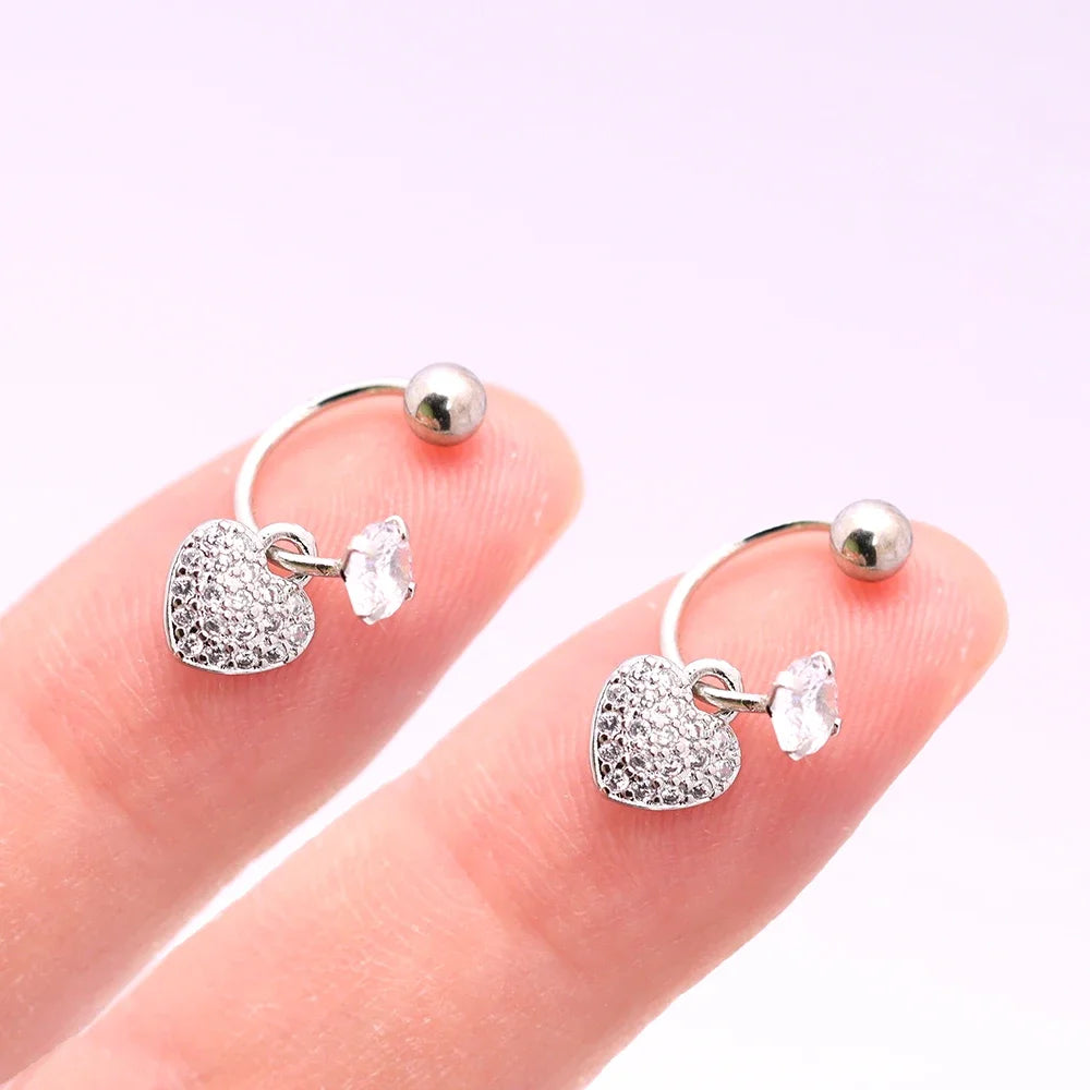 2PCS Stainless Steel Heart Cross Drop Earrings For Women Jewelry Set Helix Tragus Cartilage Daith Piercing