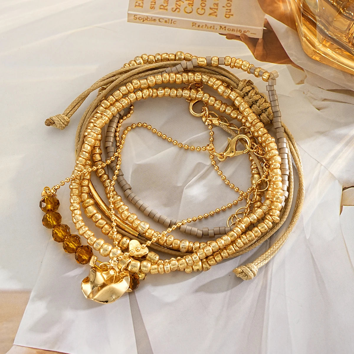 Elevate your accessory game with the 7Pcs/Set Bohemian Heart Beads Bracelets For Women, a chic collection featuring crystal round pendants on elastic beads. Perfect for stacking, gifting, or pairing with any outfit for a touch of effortless elegance.