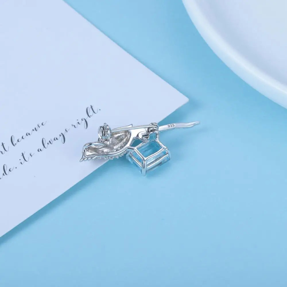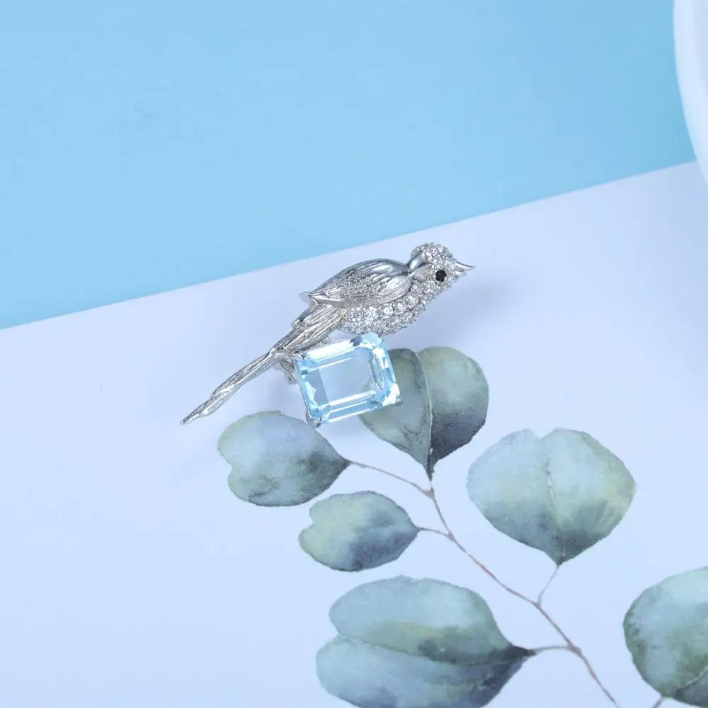 GEM'S BALLET 925 Sterling SIlver Statement Brooch Natural Sky Blue Topaz Gemstone Handmade Bird Brooches For Women Fine Jewelry