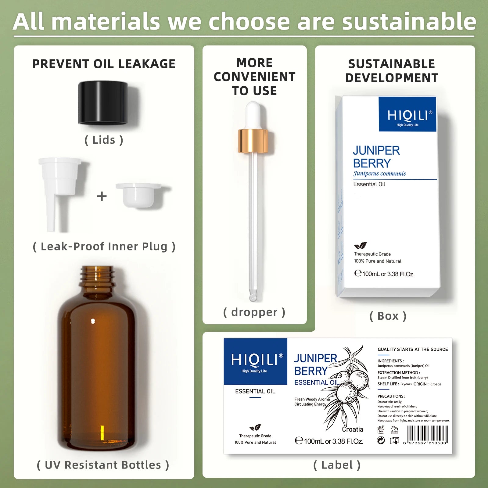 HIQILI 100ML Juniper Berry Essential Oils,100% Pure Nature for Aromatherapy, Diffuser, Humidifier, Massage, Rouse, Relexation