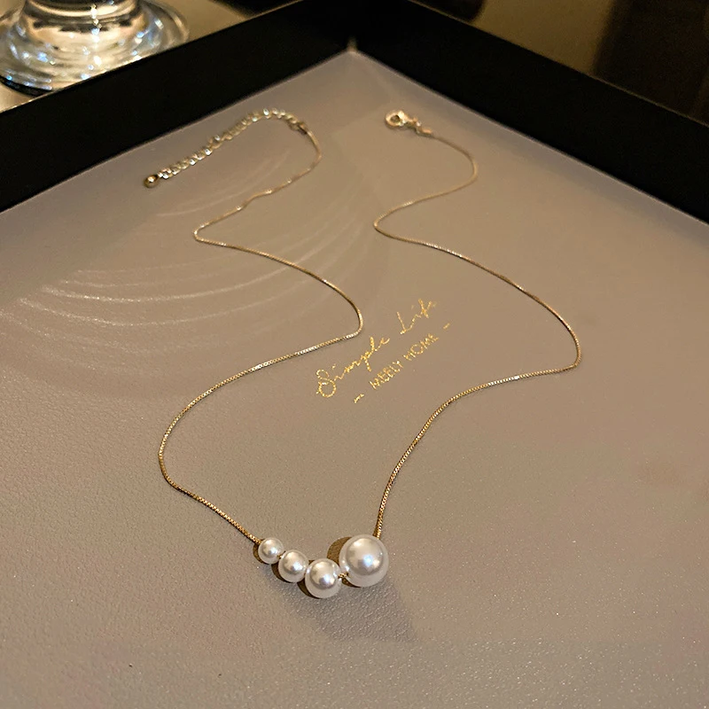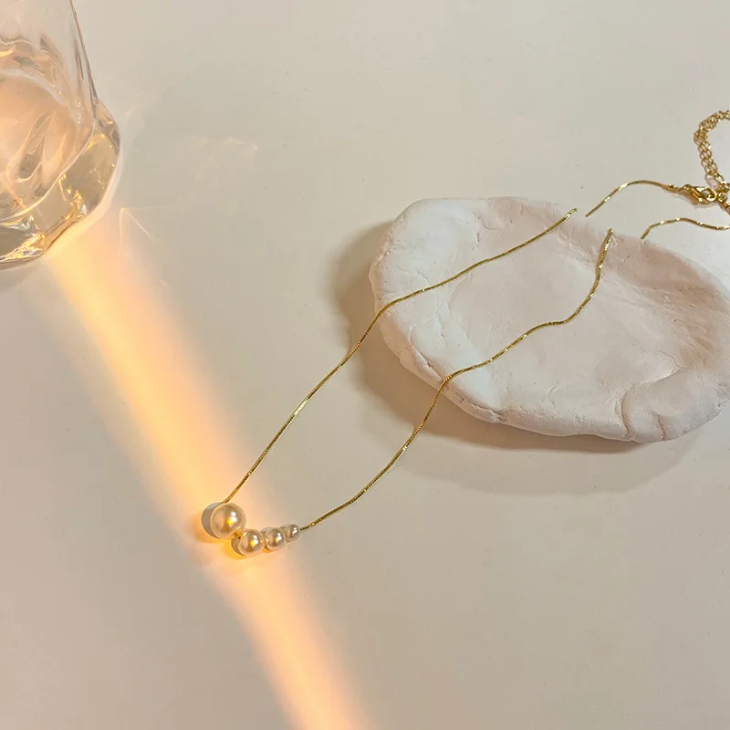 Imitation Pearl Chokers Necklaces for Women French Temperament Gold Plated Collar Chain Minimalist Trendy Party Jewelry Gift K1