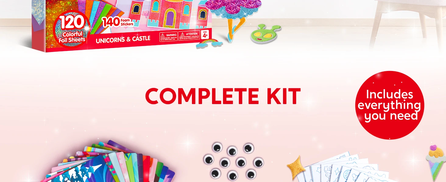 Experience hours of fun: Set off on a captivating journey of foil art and craft that sparks your child's imagination. With 10 pictures,120+ foil sheets, and 140+ foil stickers, they can breathe life into captivating images of princesses, fairies, and unicorns, fostering endless hours of creative exploration and play.