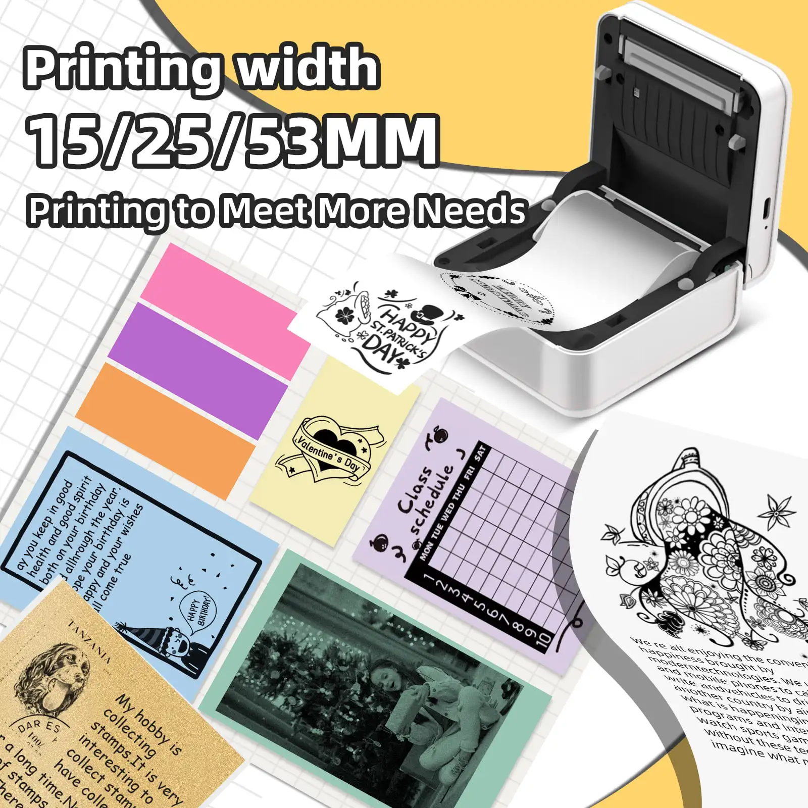 - Flexible Paper Widths supports 15mm, 25mm, and 53mm rolls—perfect for labels, stickers, notes, and mini photos.
