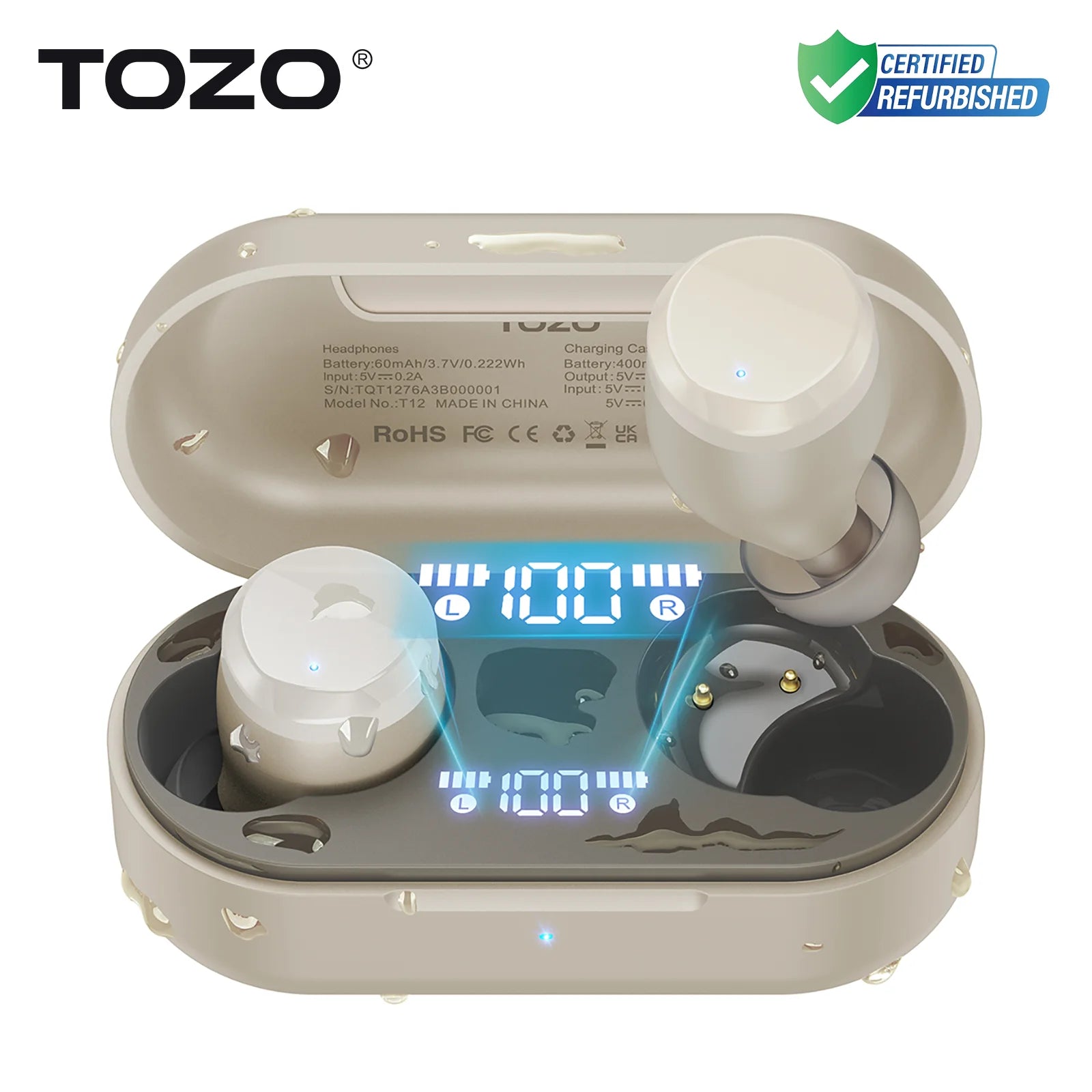 TOZO Tonal Dots is T12 upgrade version,also call T12 mini because of smaller size,more ergonomic design.You will feel cozy when wear this earbuds. Full in-ear earbuds can provide good sound stereo.Compatiable with LED digital display,you can master power easily.