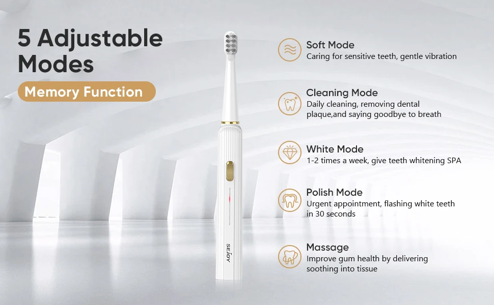 SEJOY Electric Toothbrush with 12 Brush Heads, Sonic Electric Tooth brush with 25500 VPM Deep Clean 5 Modes, Rechargeable