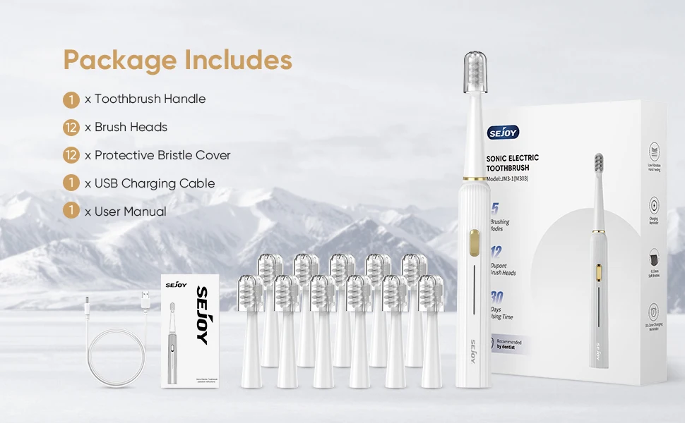 SEJOY Electric Toothbrush with 12 Brush Heads