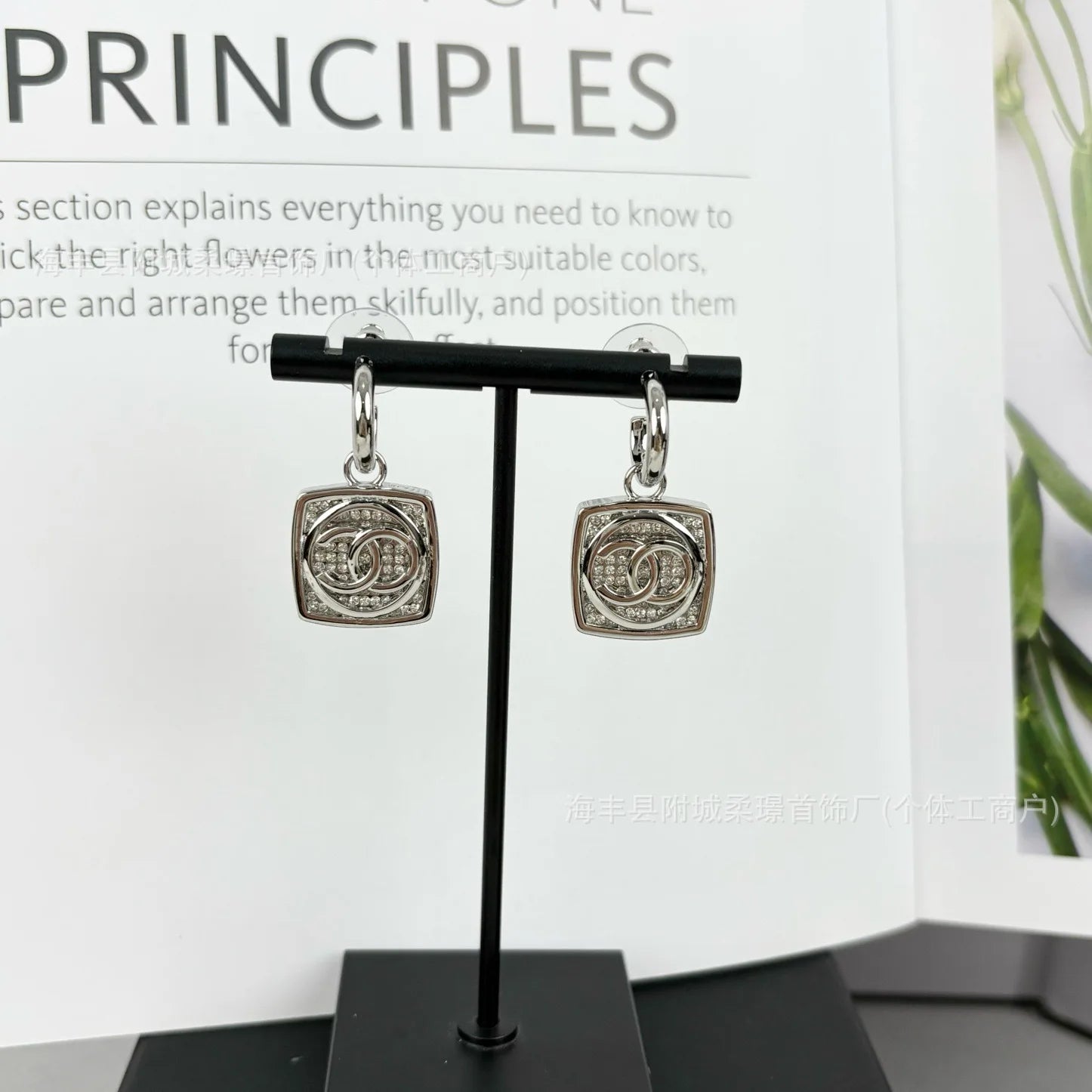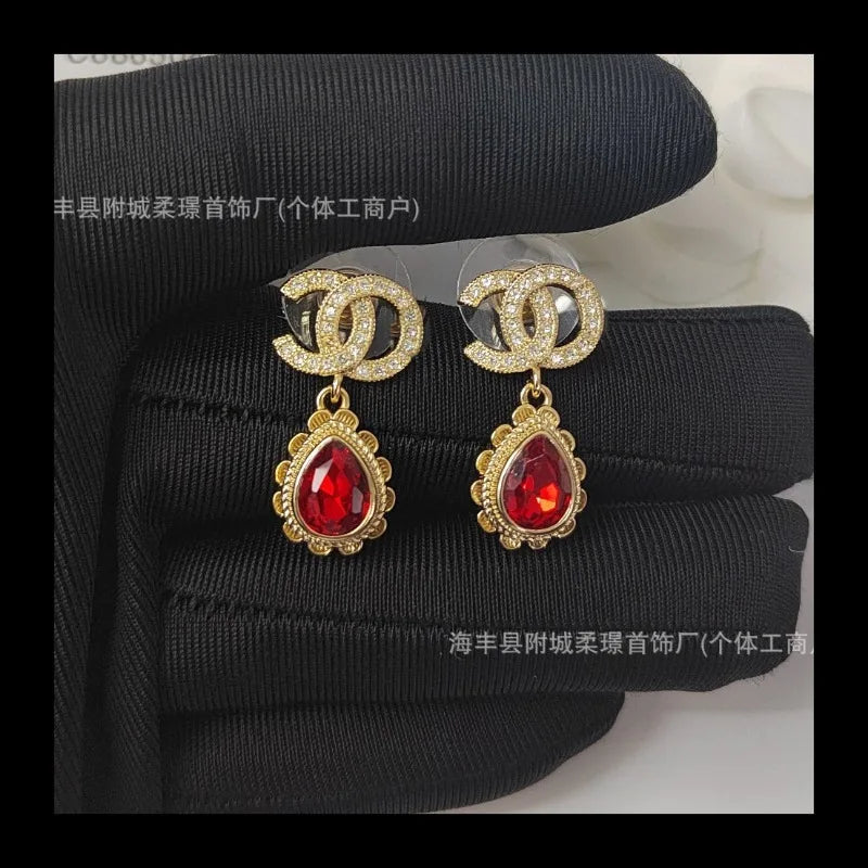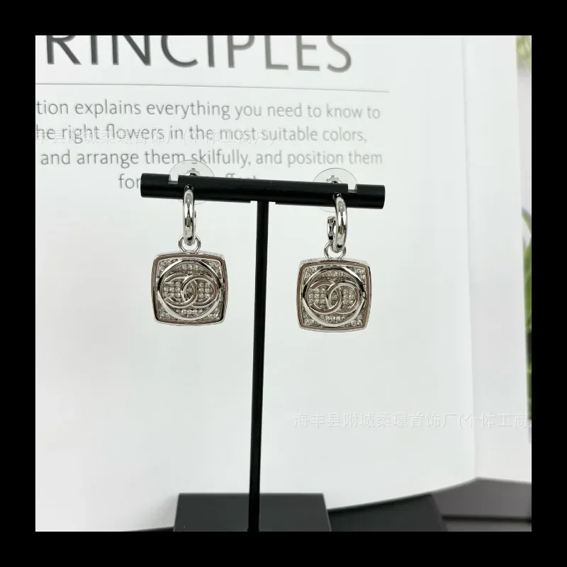 Small Sphere Shape Fashionable Round Ball with Square Diamond Letter Stud Earrings Gold-plated Material