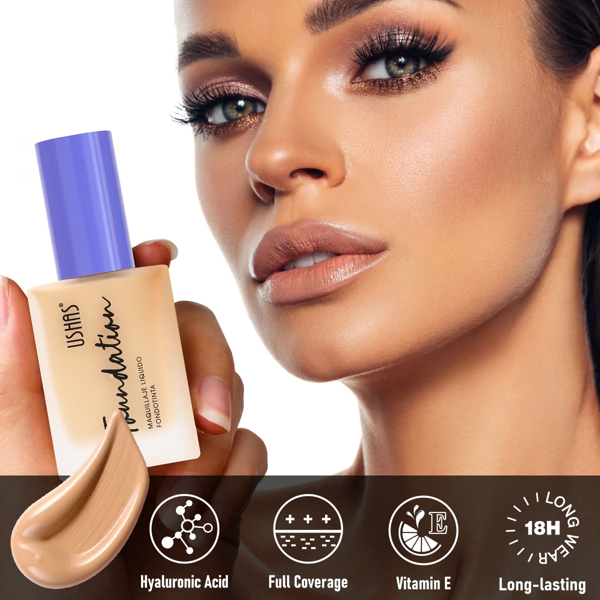 USHAS Multi-Functional Makeup Foundation Liquid Provides 18-Hour Long-Lasting Concealment and Moisturizes and Locks In Water